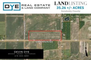 35 acres of mostly tillable land located in Northern Sandusky County. This farm consists of 100% Toledo Silty Clay soils. Primarily all tillable with a significant amount of road frontage. Don’t miss this opportunity to purchase all tillable land at a very marketable price.